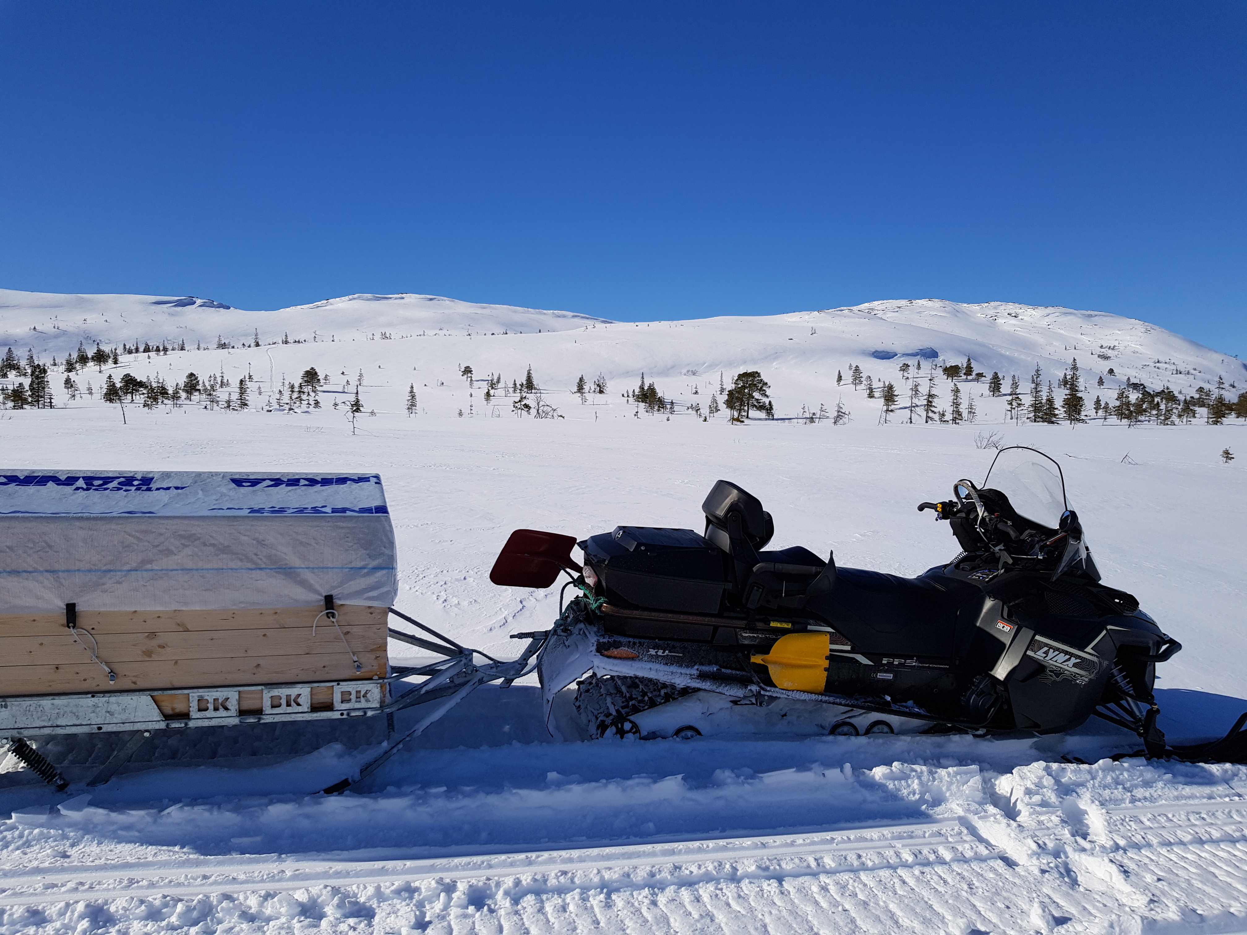 Den kan også leveres tilkjørt til bolig og hytte. Dersom det ikke er vei til hytta kan veden leveres med snøscooter.